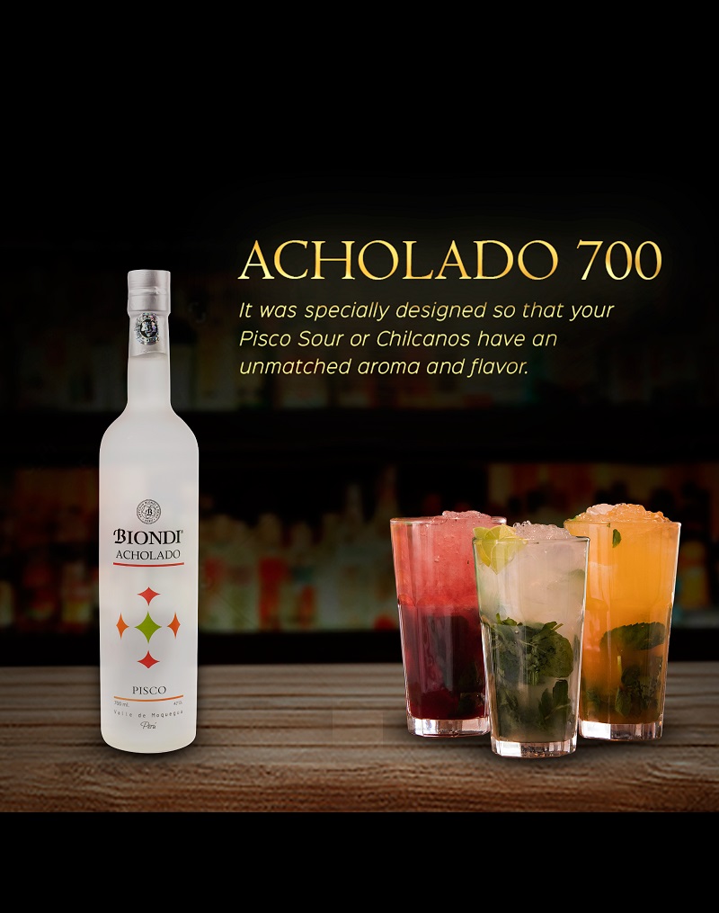 Pisco Acholado with 1-year rest in stainless steel tanks. Distilled from fresh musts recently fermented from Italia, Quebranta and Negra Criolla grapes, harvested in our own vineyards.