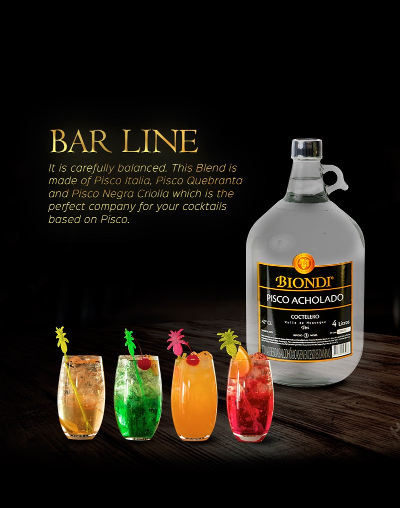 Pisco Acholado with 3 months of rest in stainless steel tanks. It is made with fresh, distilled and recently fermented musts from Italia, Quebranta and Negra Criolla grapes, harvested in our own vineyards.